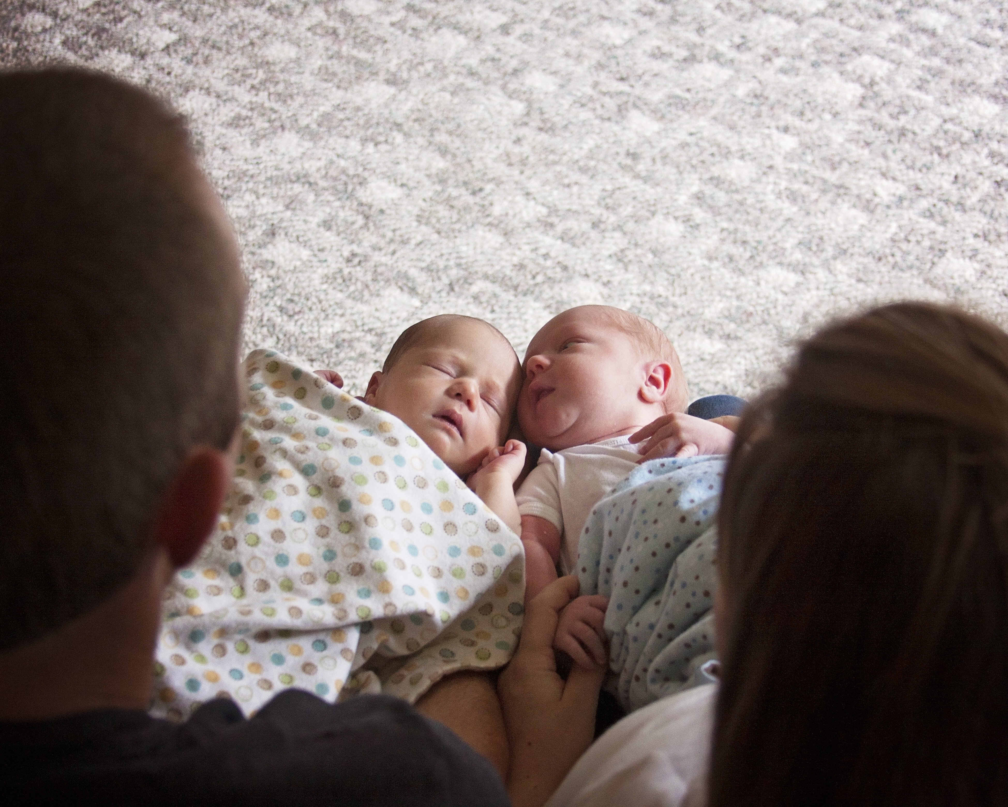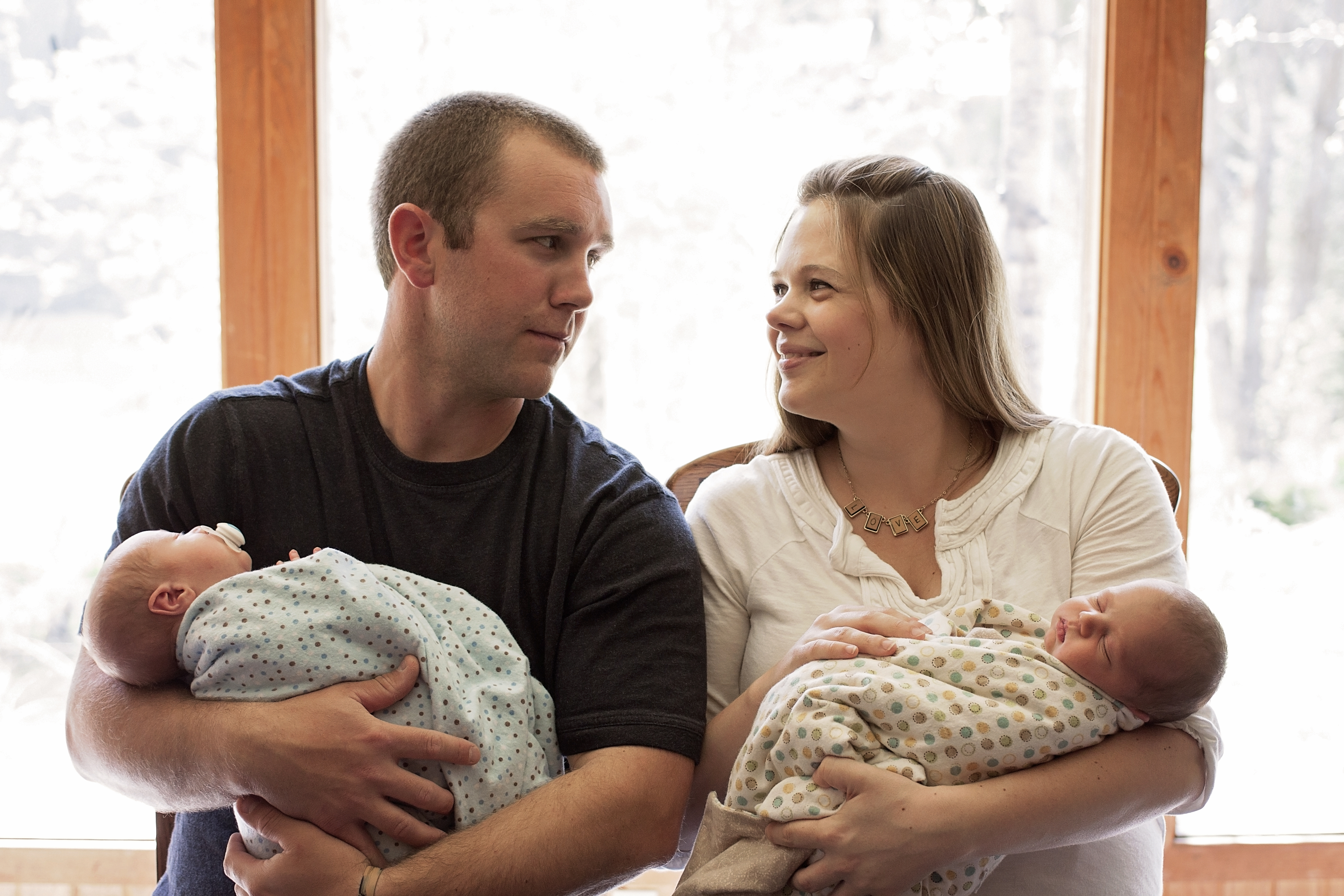 This session was so exciting to me. It was my first newborn twins session. I wondered, how do you get two tiny little people to cooperate? One newborn can be a challenge. I won’t say that I did everything perfect, but I will say I learned a lot, I got to hold newborn twins and I got to meet a sweet sweet family. I always enjoy getting to know each family. I think my favorite images ended up being the more lifestyle ones. The family gathered around their new arrivals still in awe of how tiny and new they were. Their love for the babies could be felt through the lens. To me that is a successful newborn session. The one where you catch the real life and the real love happening right that moment.