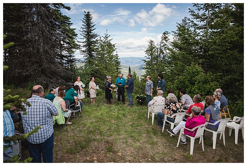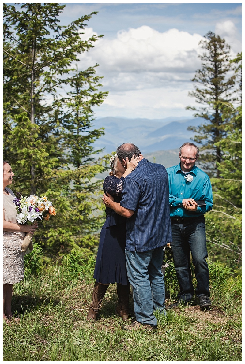 Laughter drifted down the mountain. Sifting through the tree branches flitting along like a sprite. A doe picked up her head and twitched her ears as it floated past her. The forest was alive with interest in the proceedings in the little clearing at the top of the mountain. A wedding was taking place. A beautiful wedding. A gathering of friends and family to celebrate the love of two people. She smiled up at him, and he took her hand and they walked back up the isle man and wife.